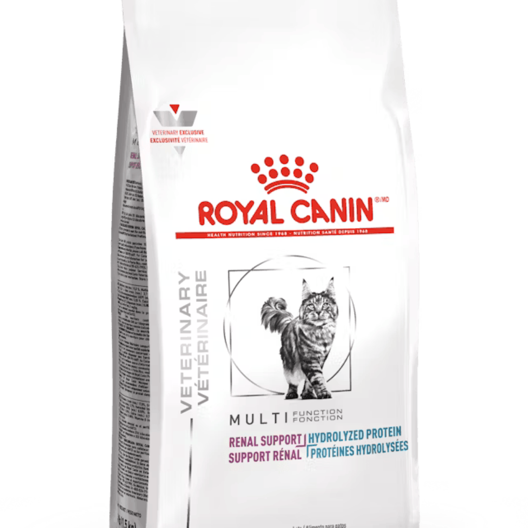 Indicated as a maintenance diet for cats suffering from both adverse food reactions or inflammatory bowel disease and stages 2, 3, or 4 of kidney disease, with high protein levels in the urine or liver failure. In these same animals, the food is also recommended to prevent the formation of urate and cystine urinary crystals and stones.